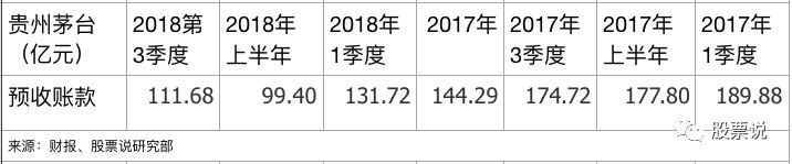 一貫被用作茅臺業績領先指標的預售賬款,從2017年一季度就開始下滑了,連續6個季度持續下滑!2018年第三季度,也沒有明顯上升!