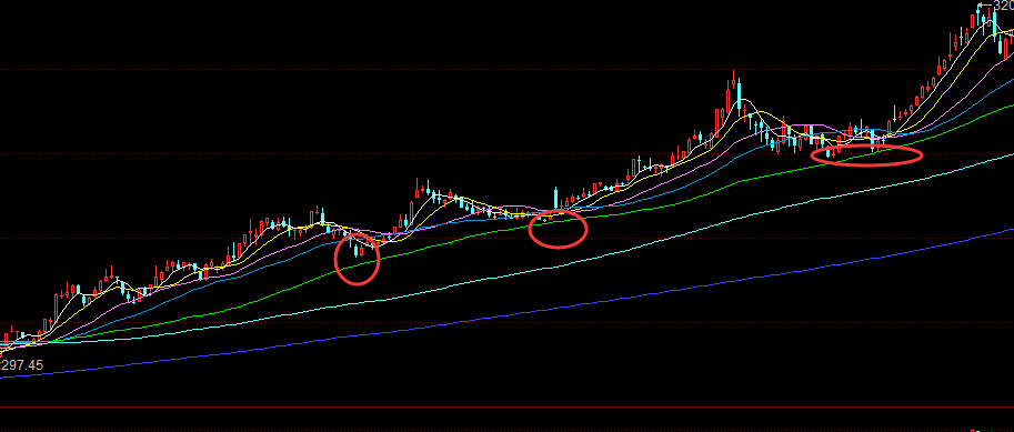 去年上證50指數走牛的時候,每次回調都恰好踩到60均線,如下圖。