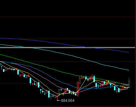 今天銀行板塊漲的比較厲害,銀行板塊指數(881155)已經突破了60日均線的壓制,圖中綠色的線。
