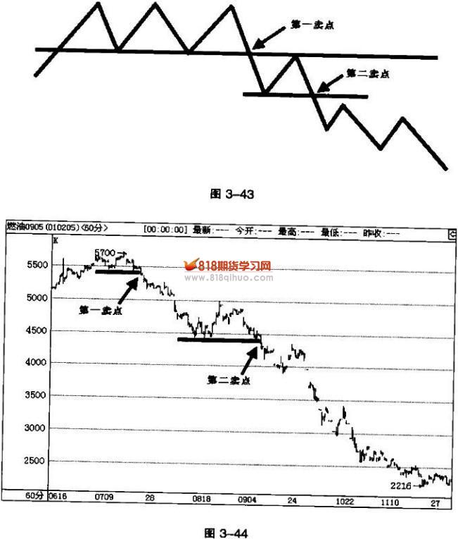 此時如果期貨價格一旦開始上漲,并沖破前?波行情沖高冋落形成的高點時,就又提供了一次進場的時機。因為期貨價格又一次向上突破了一個阻力區,因而這…價位常常會形成支撐,就要將止損位移動到新突破的價位處,不論以后的行情如何發展,這時過去所投入的資金已經出現了利潤,即使期貨價格再次下行跌破所設的新止損點,也不會造成虧損,依然還具有微利。如果期貨價格如所料,持續上漲,就可以獲取豐厚利潤了。